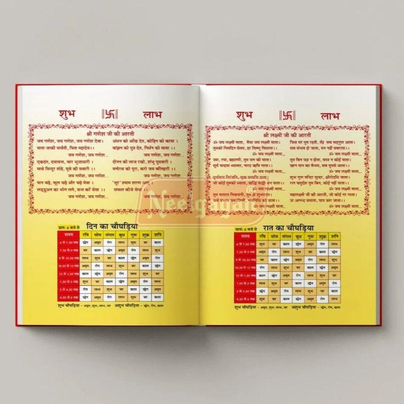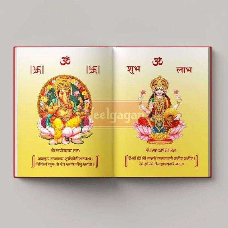 The Neelgagan Mahalaxmi Notebook is a beautifully crafted hardbound notebook, perfect for devotees and non-devotees alike. Its primary use is for Bahi-Khaata Poojan, a traditional Hindu ritual performed during Diwali, marking the Hindu New Year. During this pooja, the notebook is used to record financial details and blessings, especially for businesses and offices across India. Available in ruled and plain formats with multiple page options, it is ideal for spiritual journaling, office records, and personal use.